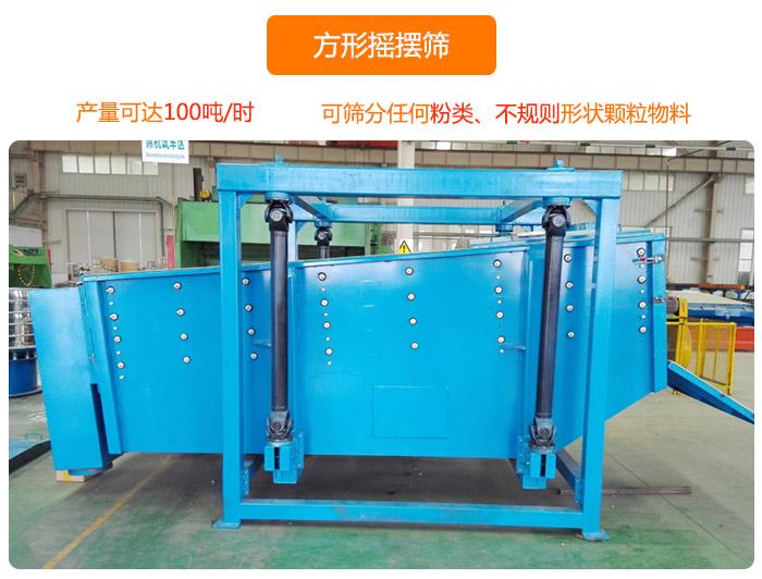 方形搖擺篩又稱長方形搖擺篩、往復(fù)篩,采用旋回往復(fù)運動方式傳輸給整個篩面一套組合運動,物料篩分開始于一個水平圓周運動的進料端,進料端的圓周回轉(zhuǎn)運動傳輸給整個篩面,使物料迅速分布,提高了篩面的利用率,篩分效率高,處理量大。